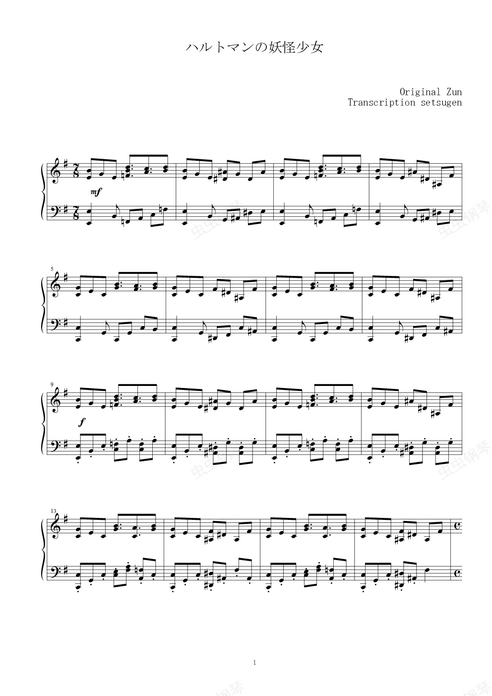 钢琴谱:【东方地灵殿】哈德曼的妖怪少女