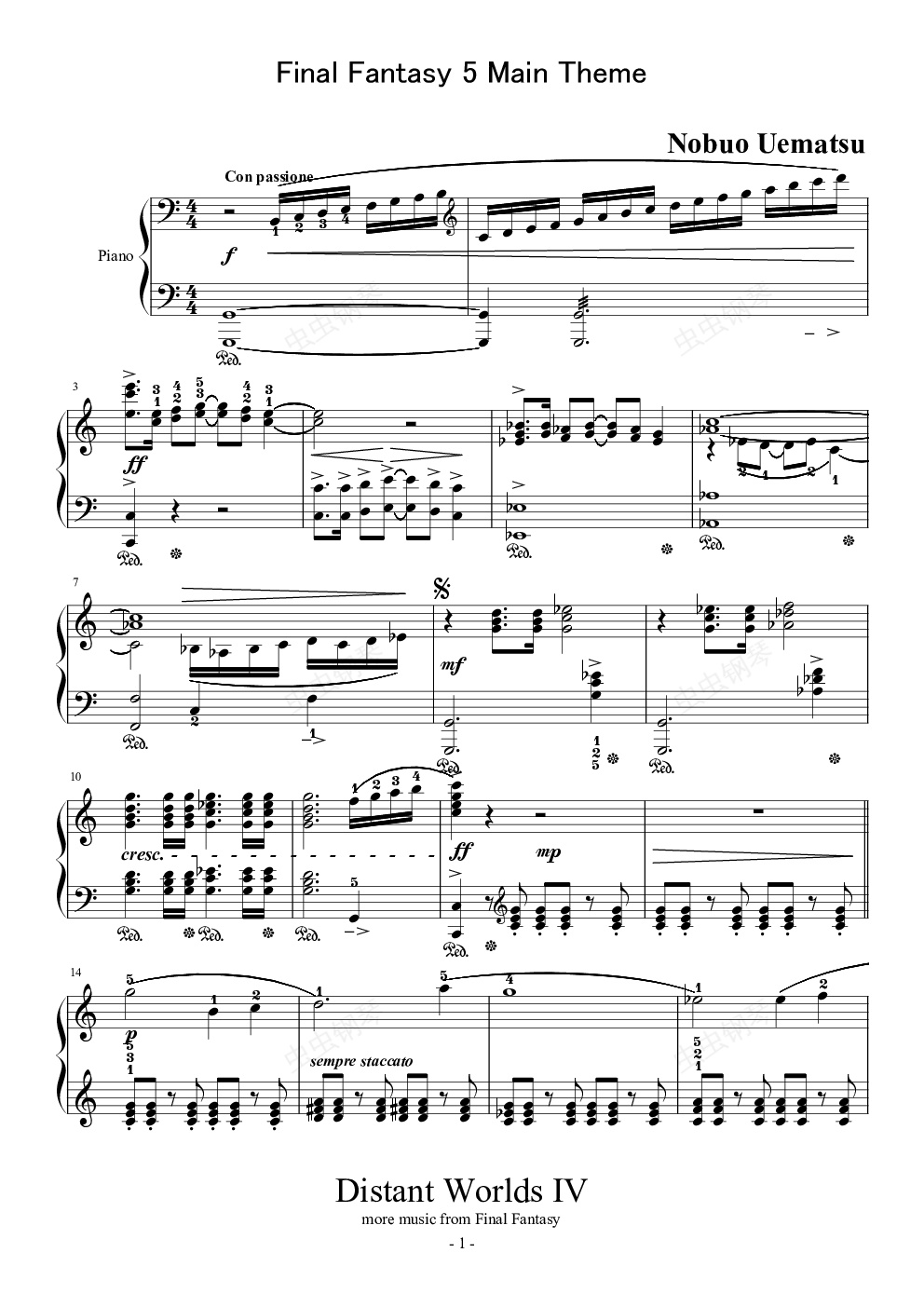 钢琴谱:最终幻想5主旋律