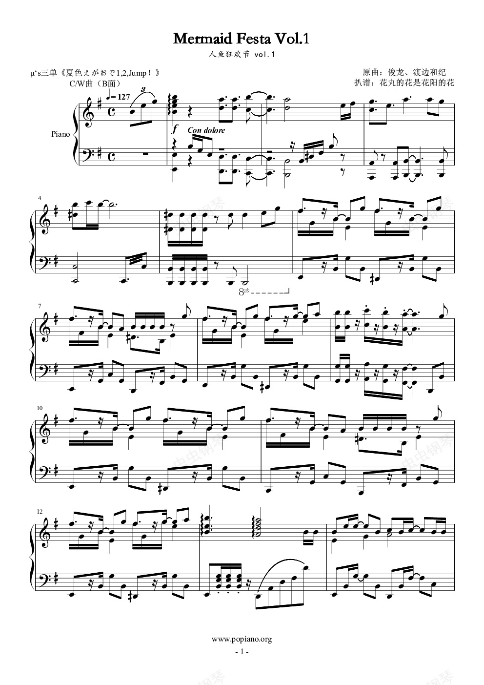 钢琴谱:【Lovelive】μ‘s~Mermaid Festa Vol.1(人鱼狂欢节vol.1)