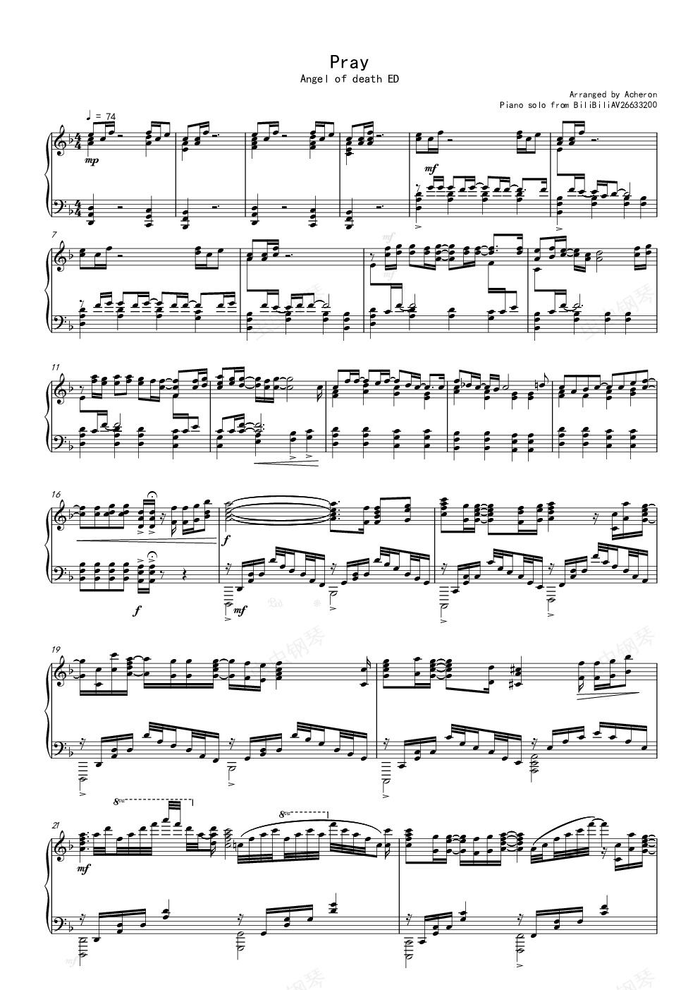 钢琴谱:Pray( full score)——杀戮天使ED完整版
