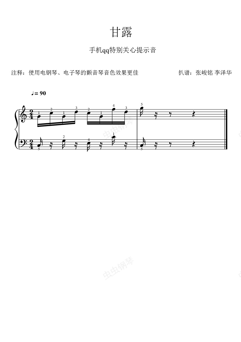 钢琴谱:甘露(手机qq特别关心提示音)