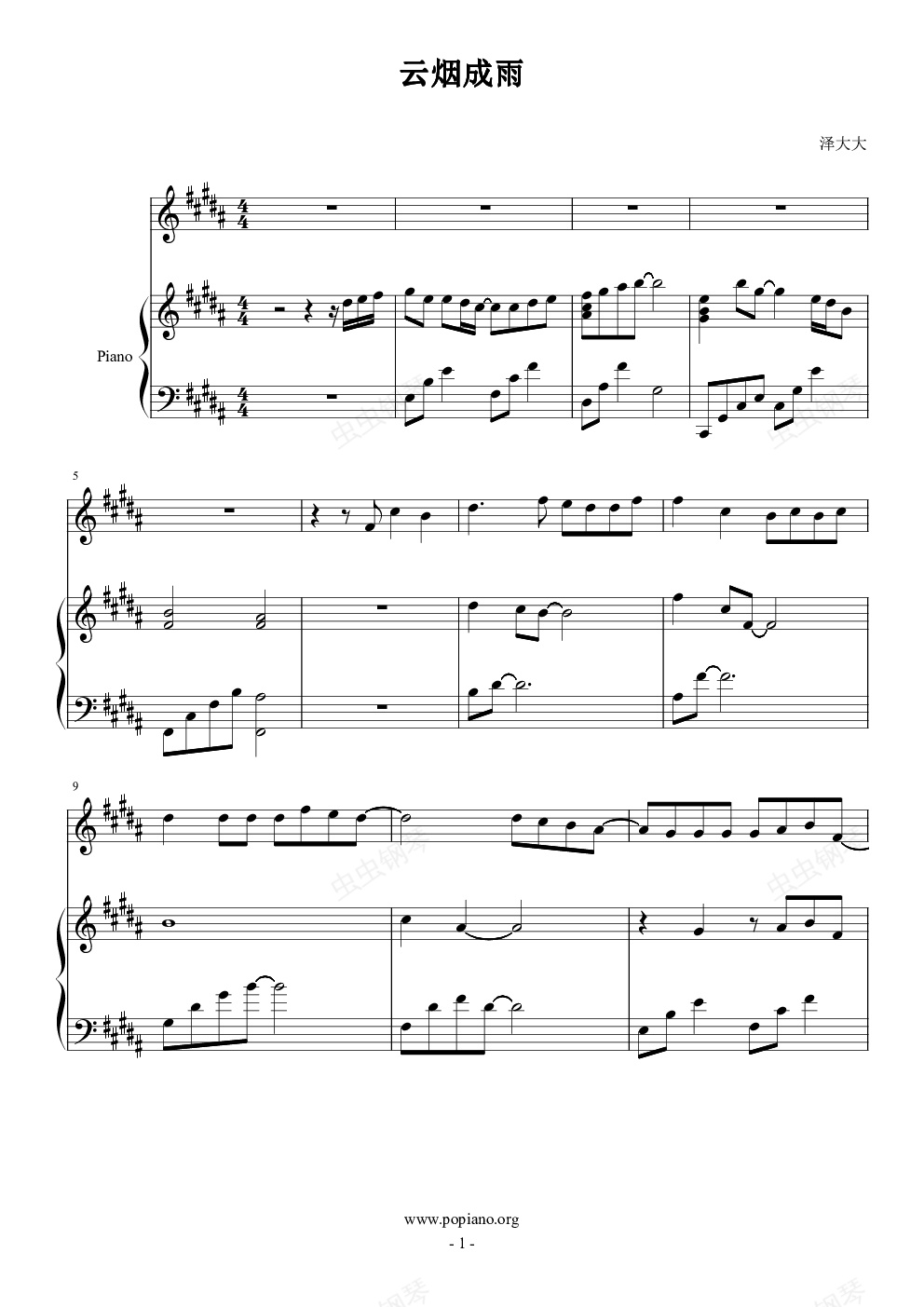 钢琴谱:云烟成雨(钢琴&小提琴)完美伴奏版