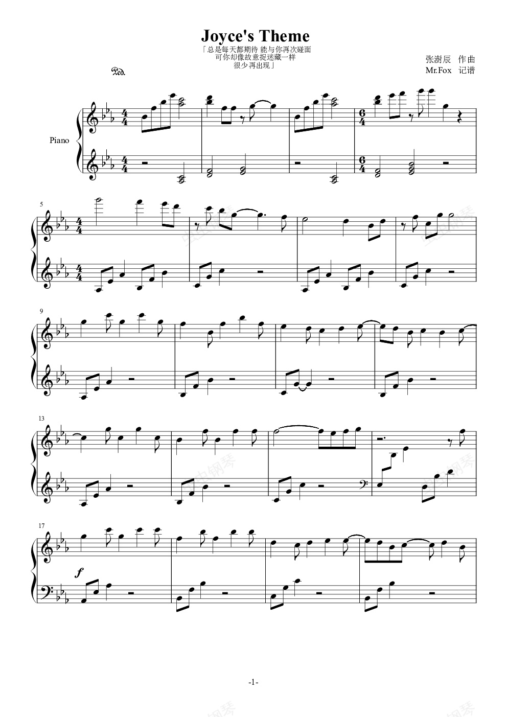 钢琴谱:【钢琴块电台】Joyce's Theme