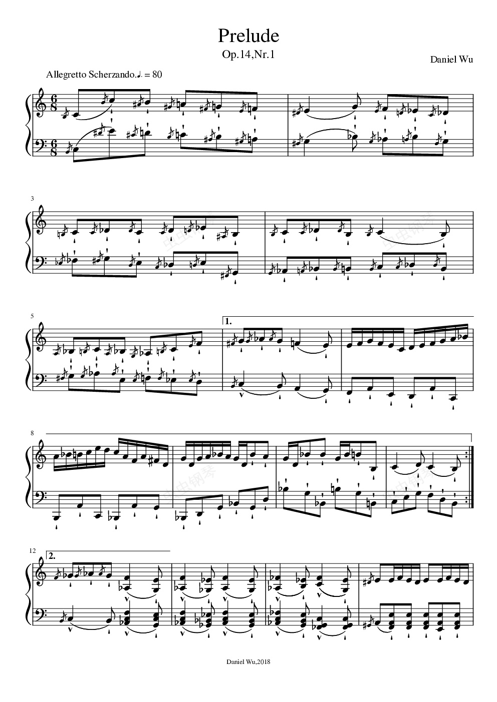 钢琴谱:前奏曲,作品14,第1号
