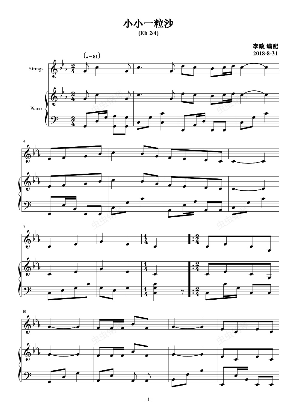 钢琴谱:小小一粒沙