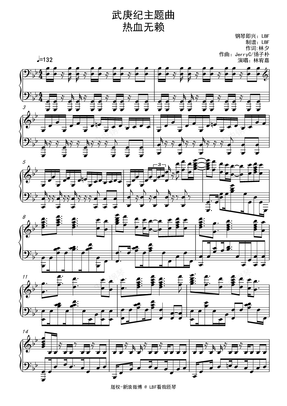 钢琴谱:【LBF】武庚纪主题曲《热血无赖》