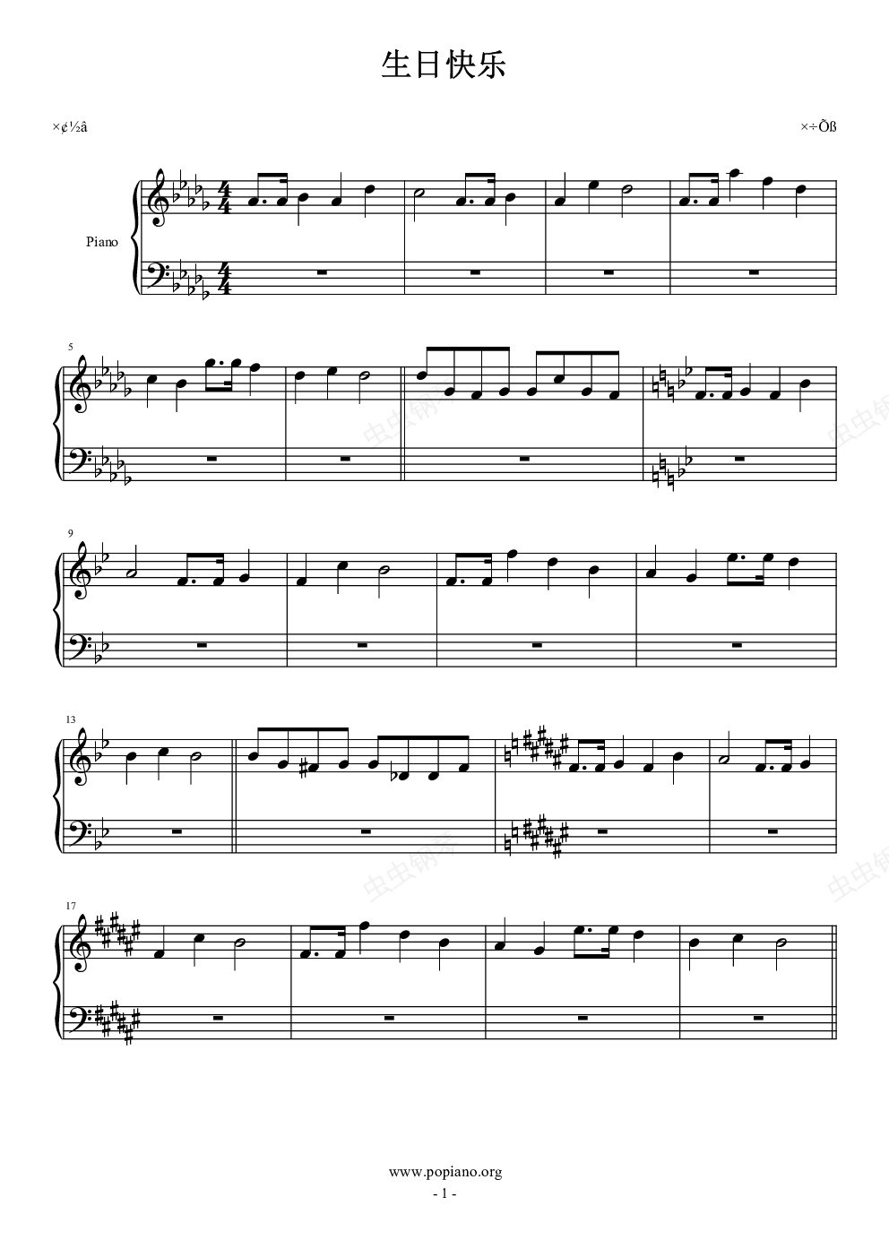 钢琴谱:生日快乐