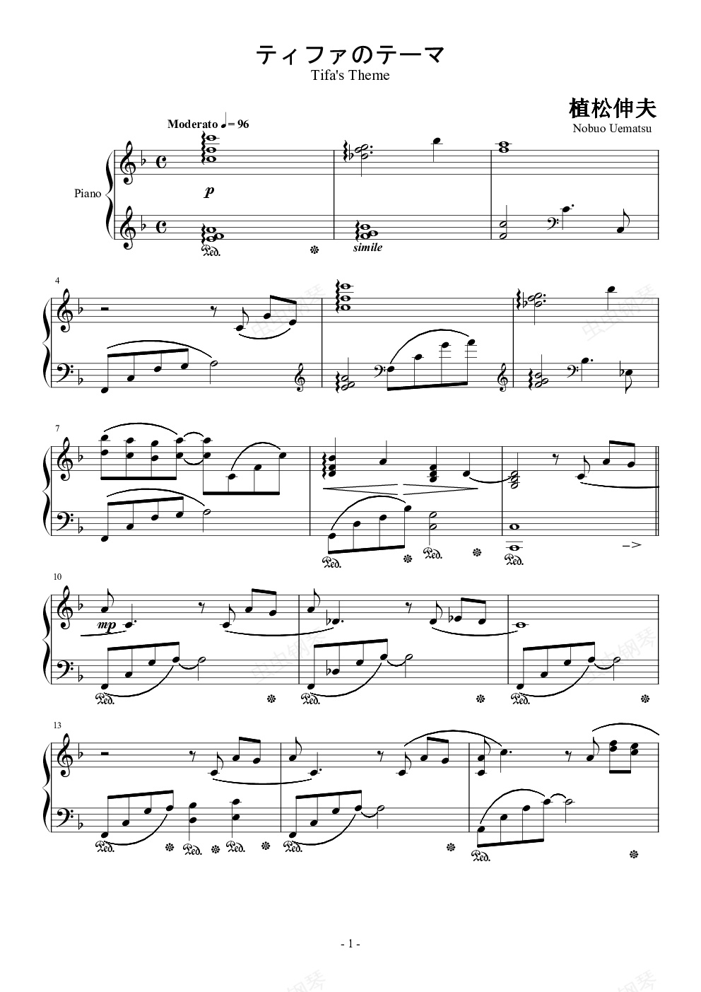 钢琴谱:最终幻想7 蒂法主题曲(ティファのテーマ)