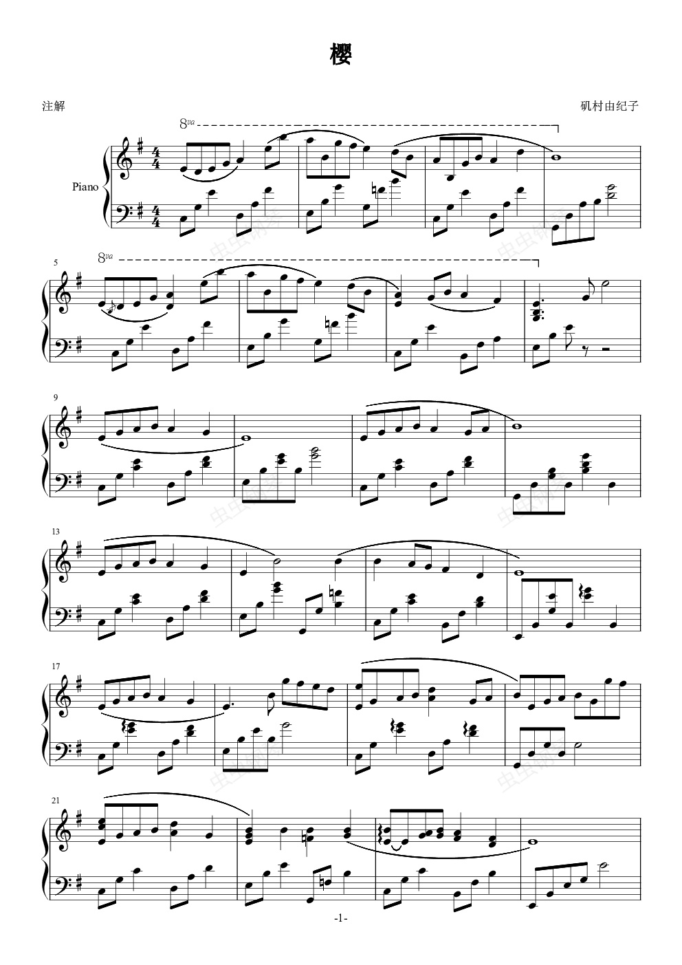 矶村由纪子是一位日本音乐人。她的曲子都很好听,尤其是《风居住的街道》和本曲《樱花》。网上有二胡和钢琴谱子,我就改成钢琴独奏啦!希望大家喜欢。