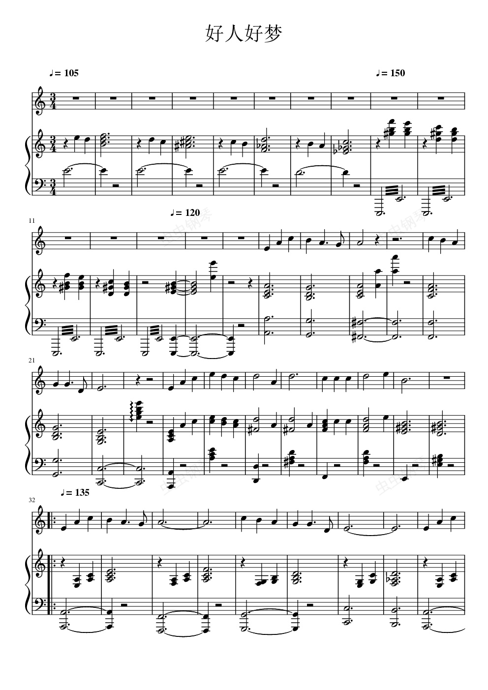 钢琴谱:好人好梦