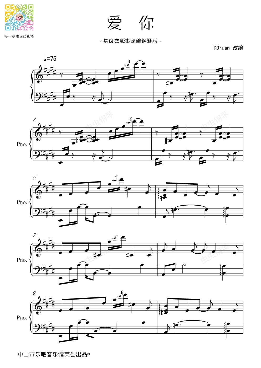 钢琴谱:爱你 钢琴改编版 【乐吧】