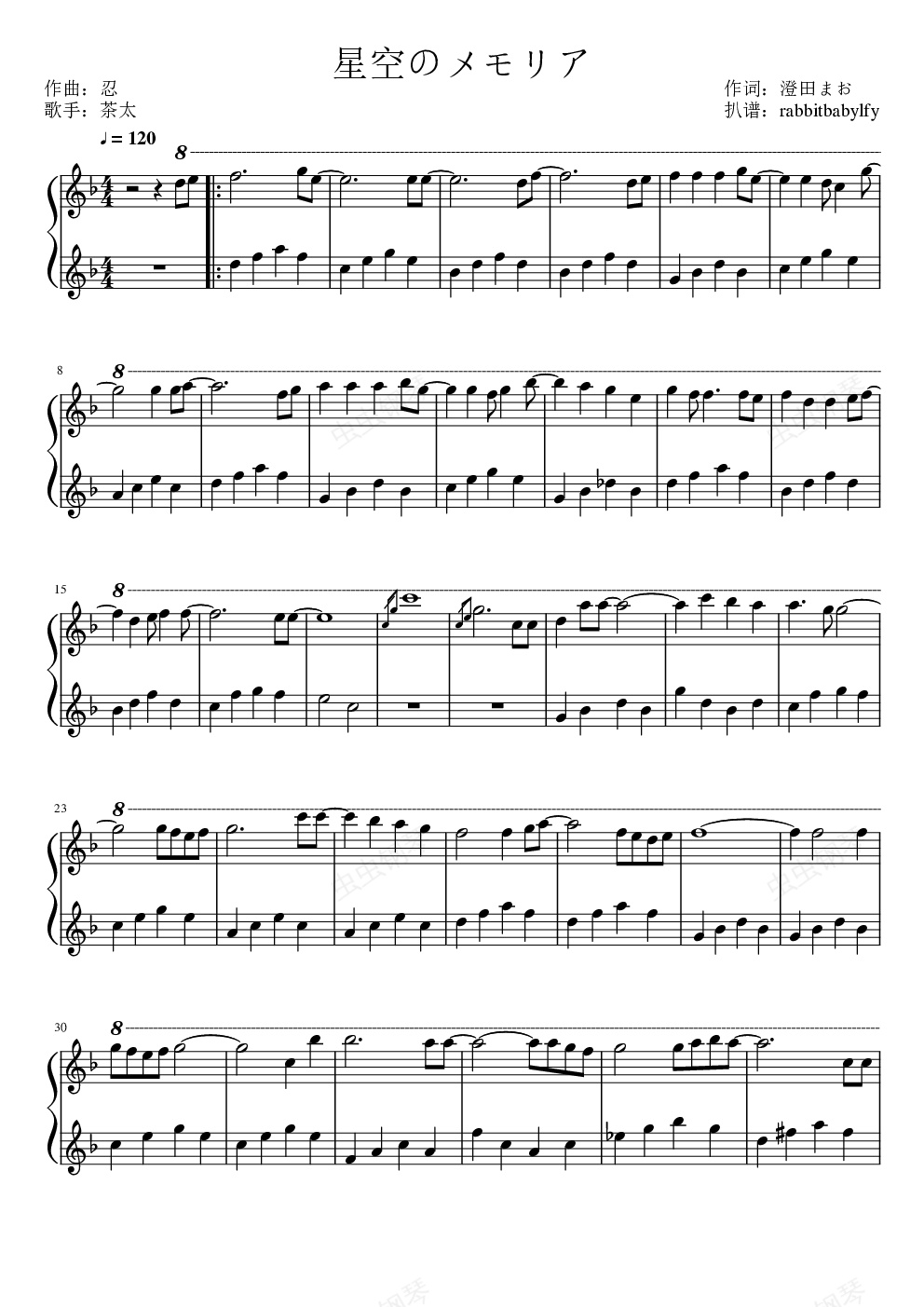 钢琴谱:星空のメモリア(星空的记忆ED2)