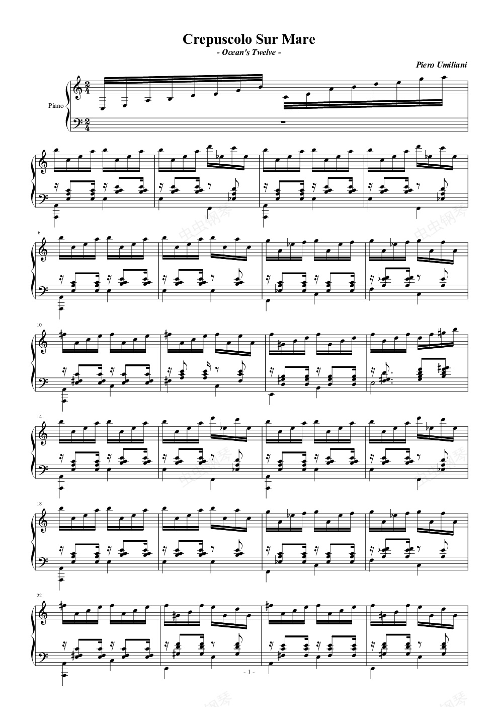 钢琴谱:海上暮光 吉他改编 Crepuscolo Sul Mare
