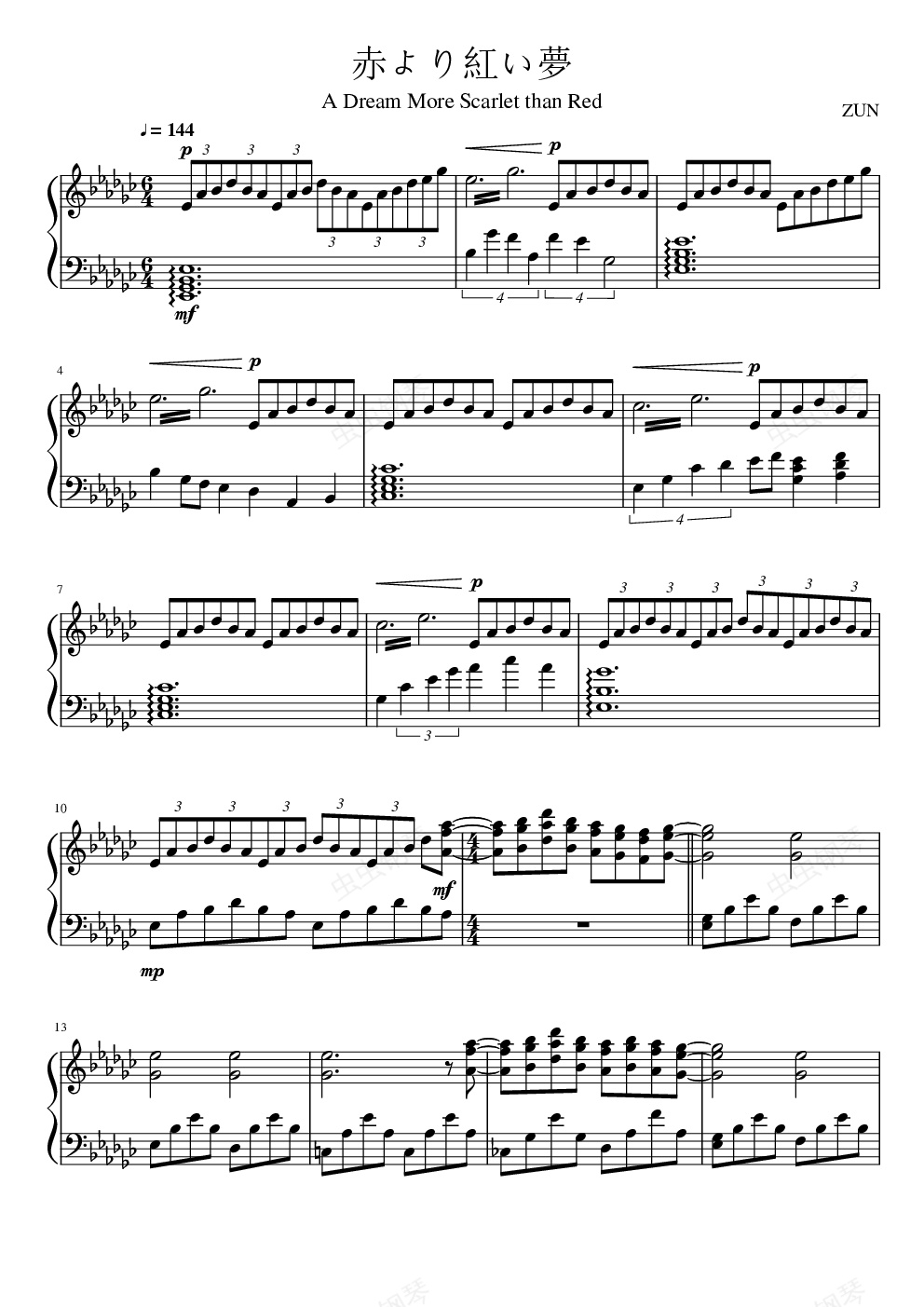 钢琴谱:【东方project】红魔乡全曲