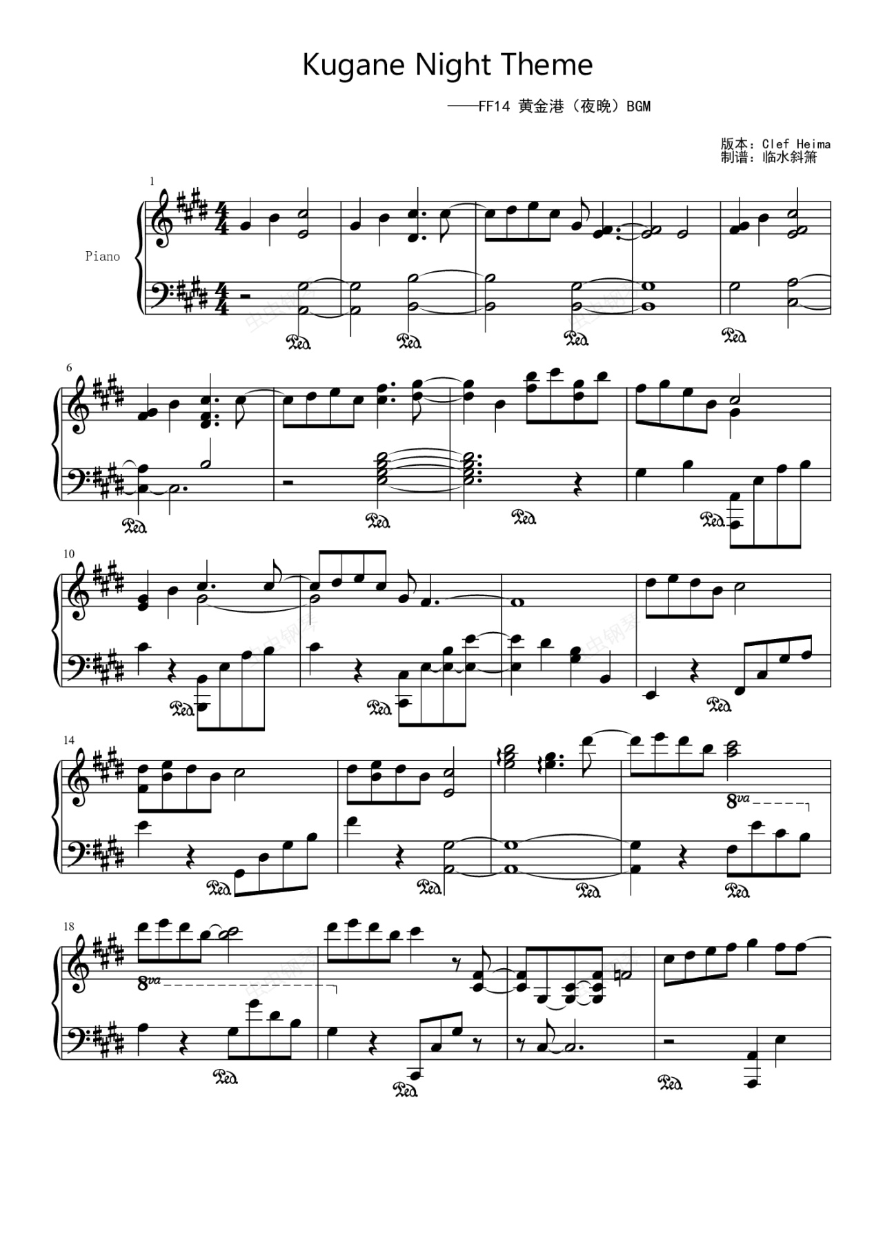 扒了很久终于扒出来了!B站演奏求支持!/video//超级喜欢黄金港的BGM,这个是上小姐姐clef heima的版本~可以说是非常抒情了~从扒谱到边弹边修改,前前后后也差不多要3个月了~最终版出来的时候超有成就感的!需要注意的是,第18小节为了保持左手和弦的完整性,so写在左手里了,但是弹得时候个人是和原视频保持一致,用右手弹的。大家这里可以随意。希望大家能喜欢~~