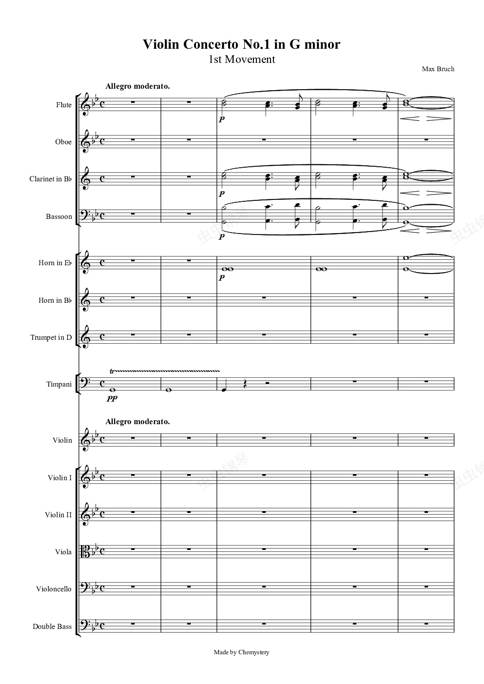 钢琴谱:g小调第1小提琴协奏曲Op.26-第一乐章