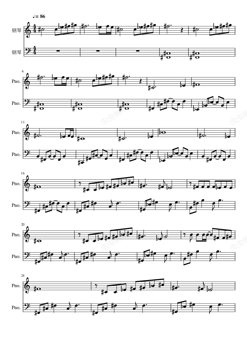 钢琴谱:彩虹下面
