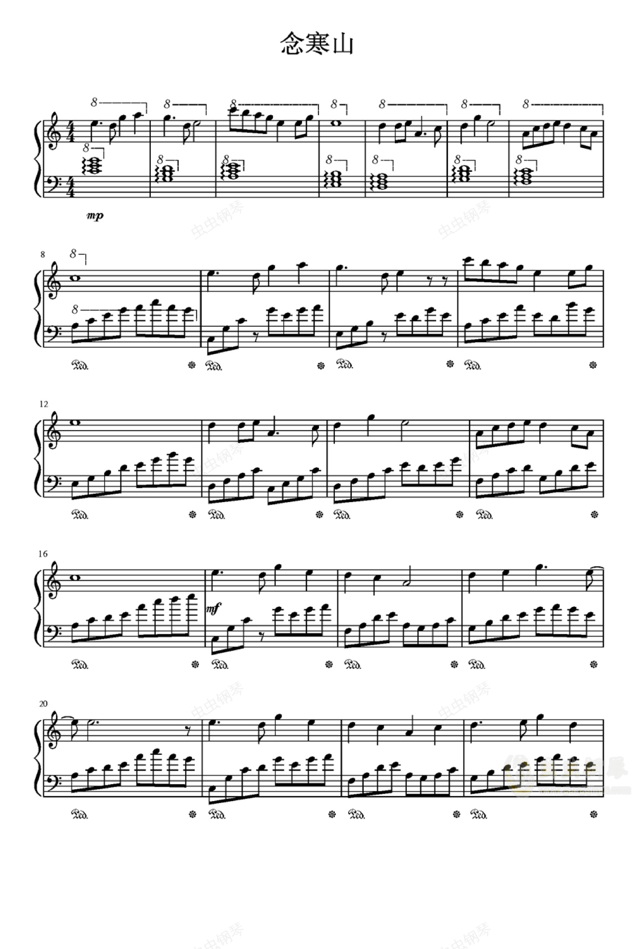 钢琴谱:念寒山