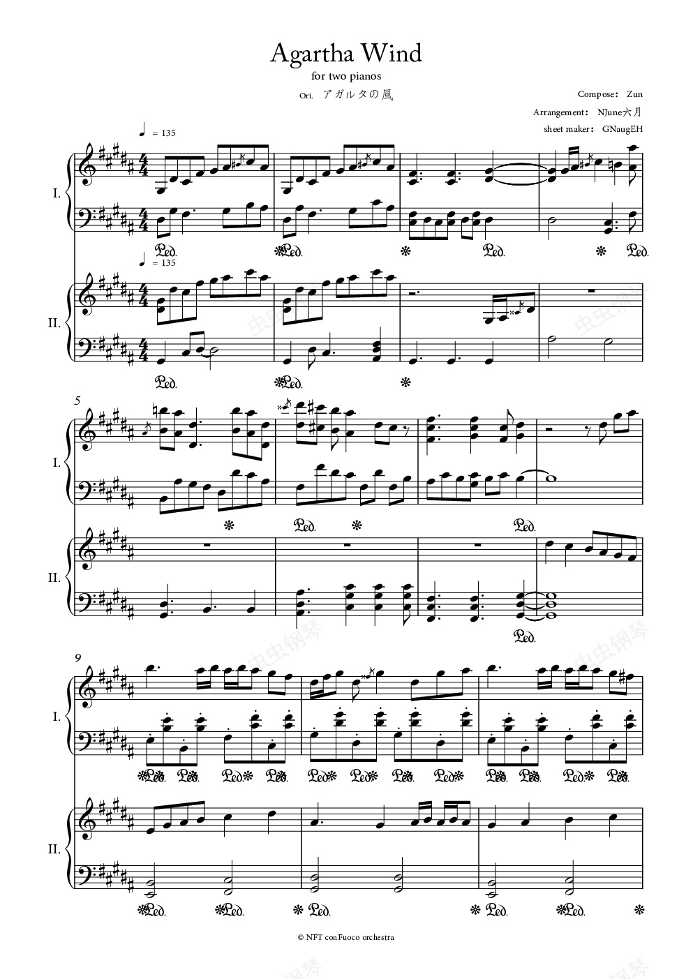钢琴谱:【伊奘诺物质】阿加尔塔之风(双钢)【NFT】