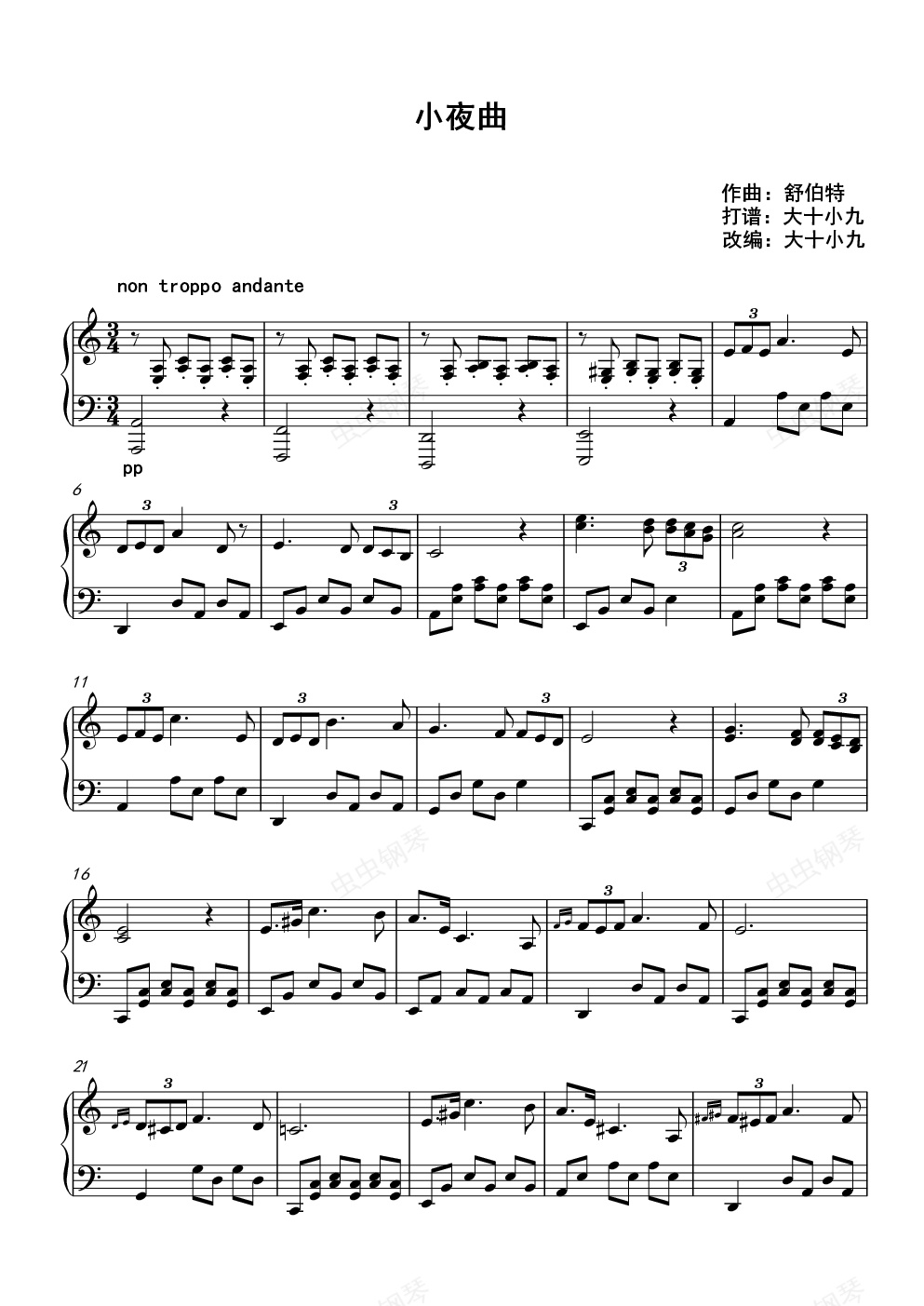 钢琴谱:舒伯特小夜曲(C调原谱和弦简化版)