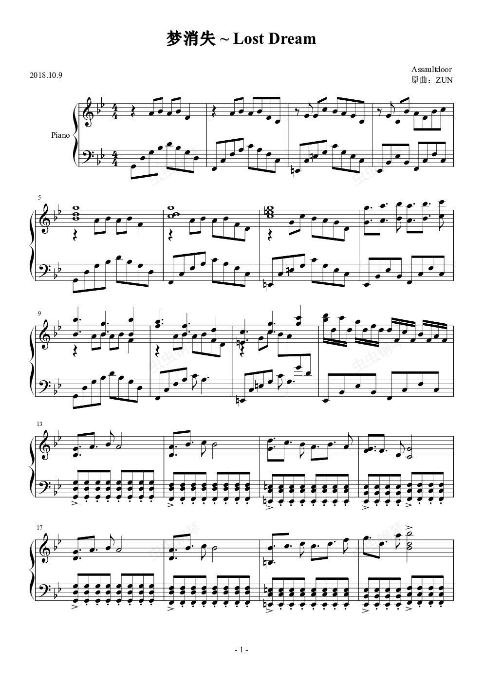 钢琴谱:【东方梦时空】梦消失~Lost Dream
