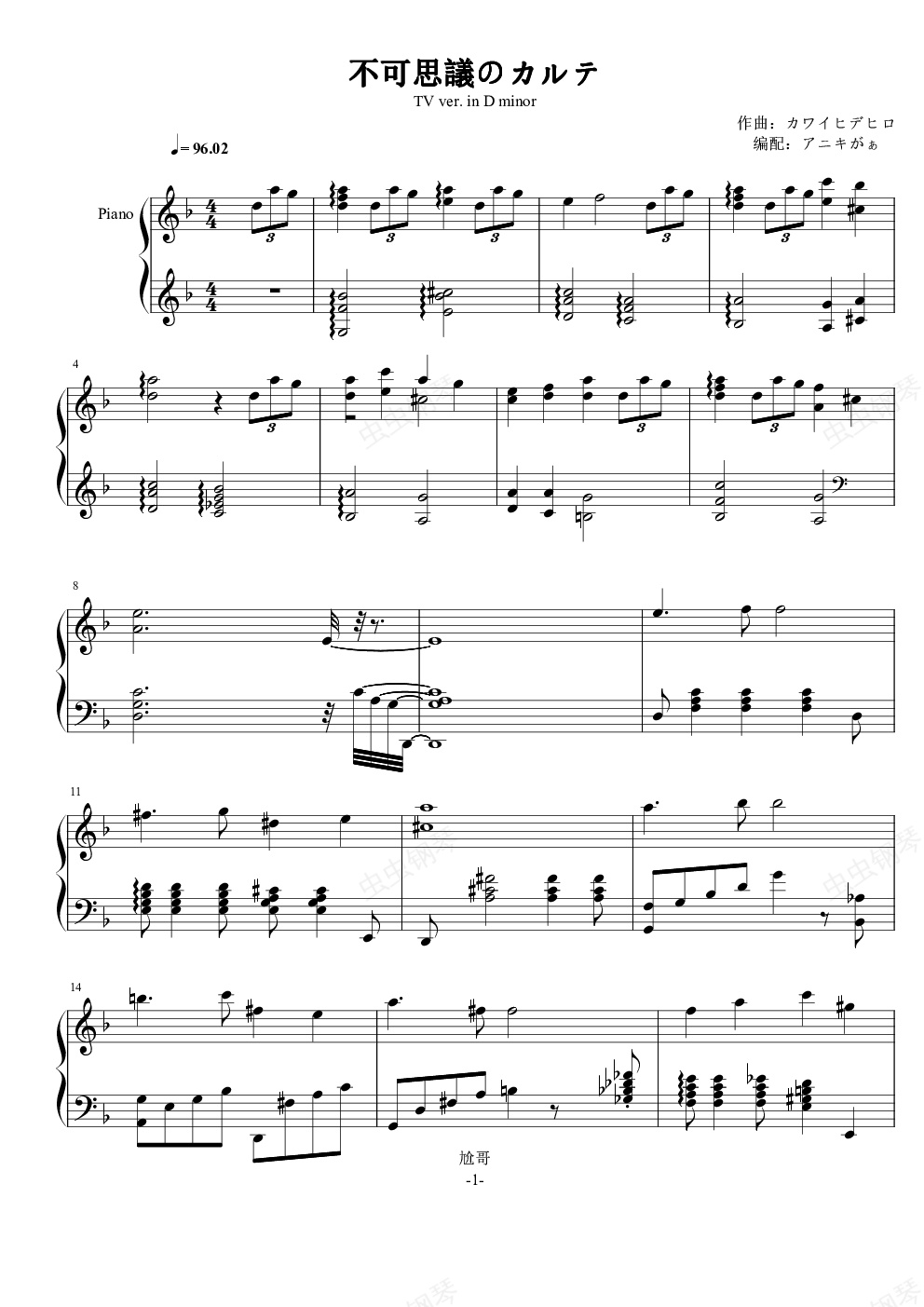 钢琴谱:{简易版}【青春猪头少年不会梦到兔女郎学姐】不可思議のカルテ (不可思议的病历)