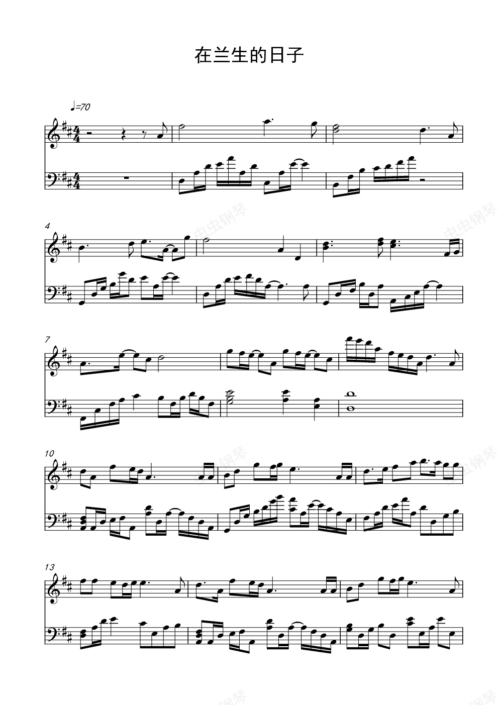钢琴谱:在兰生的日子(复旦)