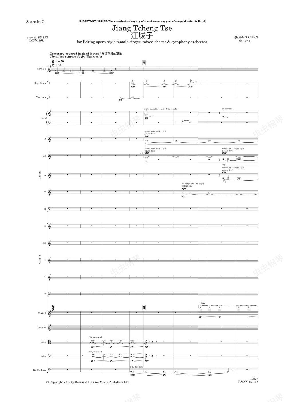 钢琴谱:江城子-陈其钢