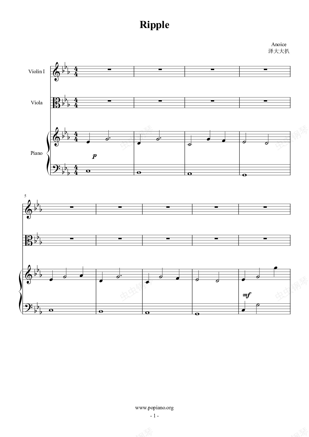 钢琴谱:Ripple(钢琴&小中提琴)
