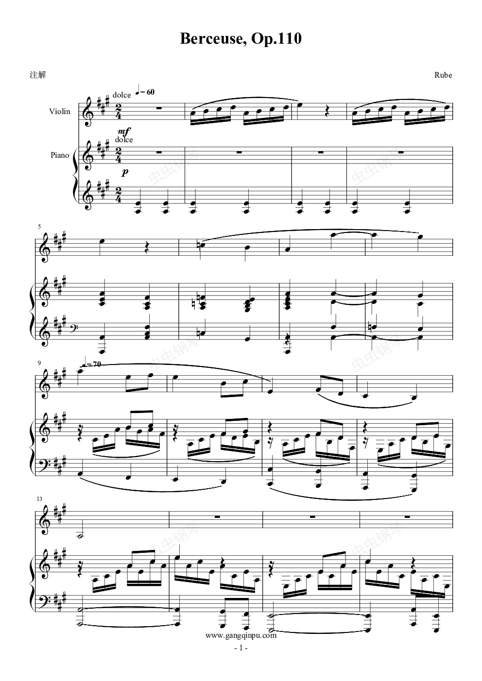 钢琴谱:Berceuse, Op.110