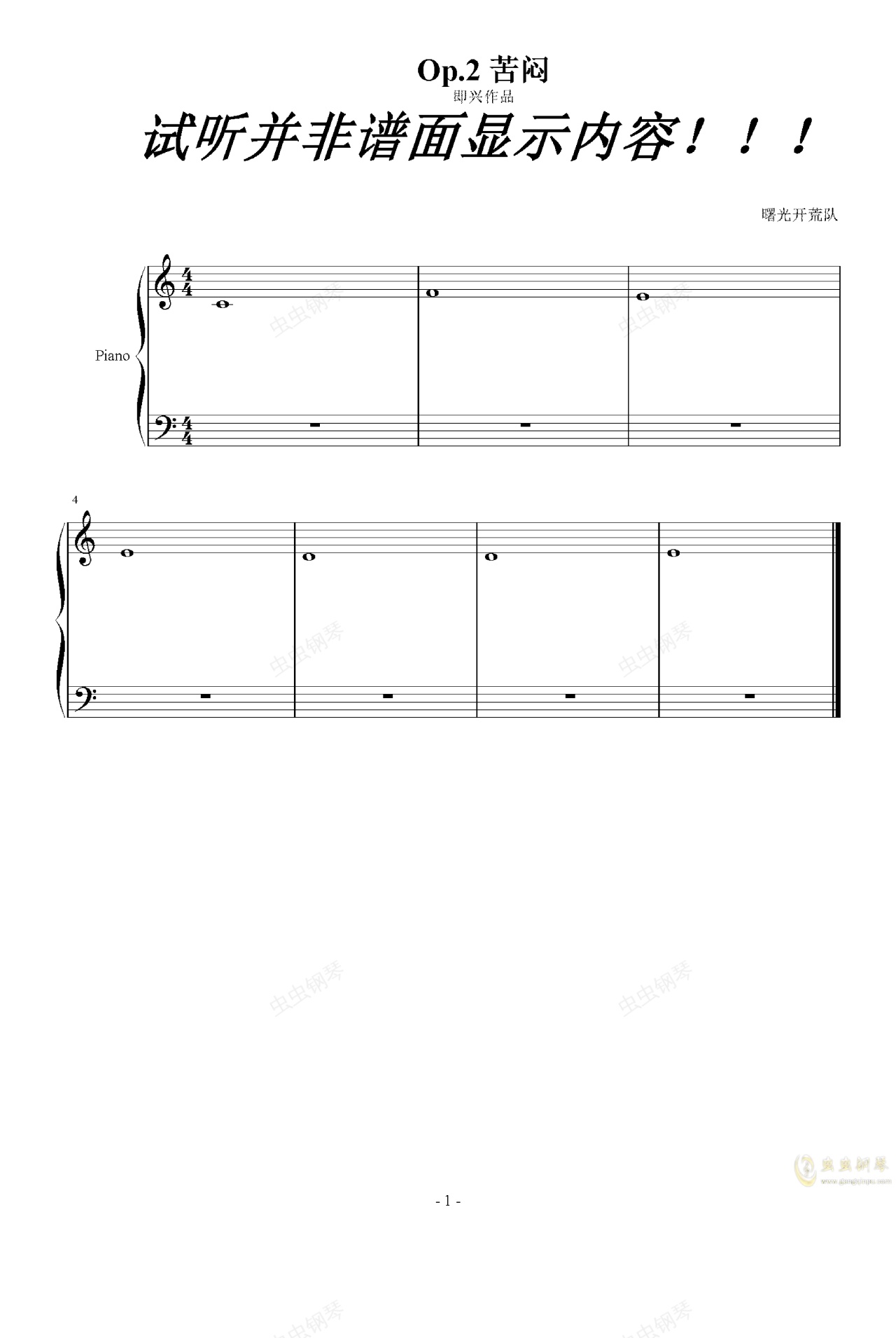 钢琴谱:Op.2 即兴作品-苦闷