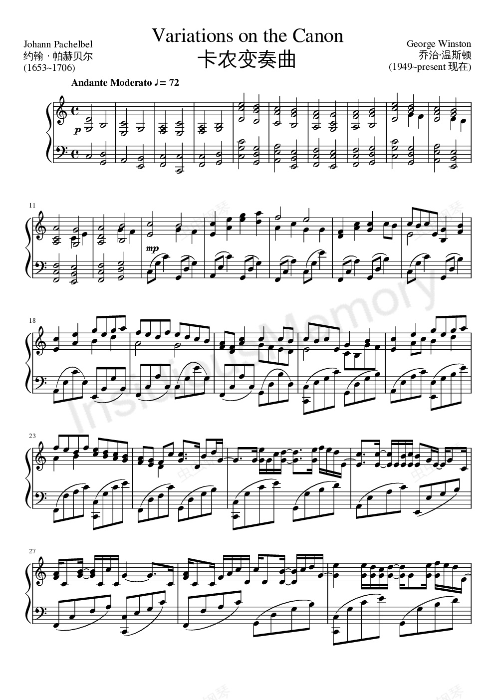 钢琴谱:卡农变奏曲 Variations on the Canon