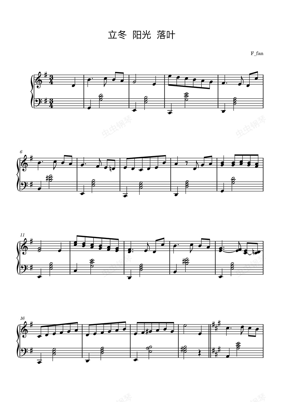 钢琴谱:立冬 阳光 落叶