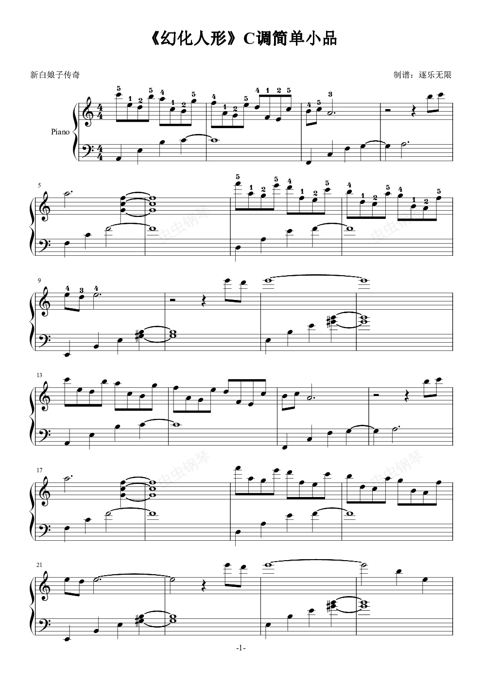 钢琴谱:《幻化人形》C调简单小品