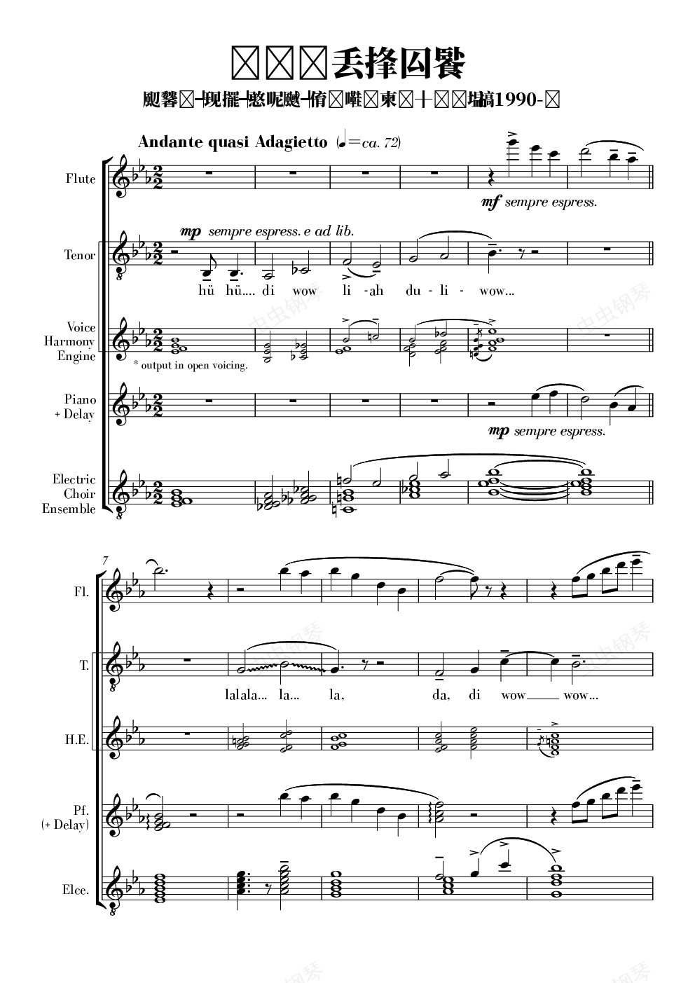 钢琴谱:天台月光往事,陈文戈