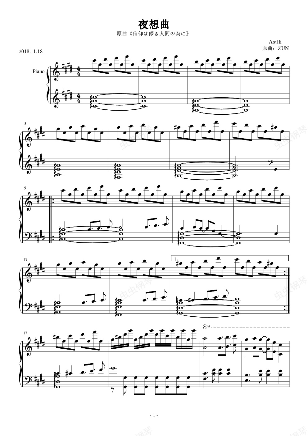 钢琴谱:【东方】夜想曲(原曲:信仰は儚き人間の為に)