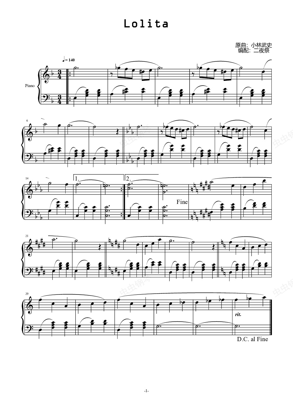 钢琴谱:【燕尾蝶】Lolita【小林武史】