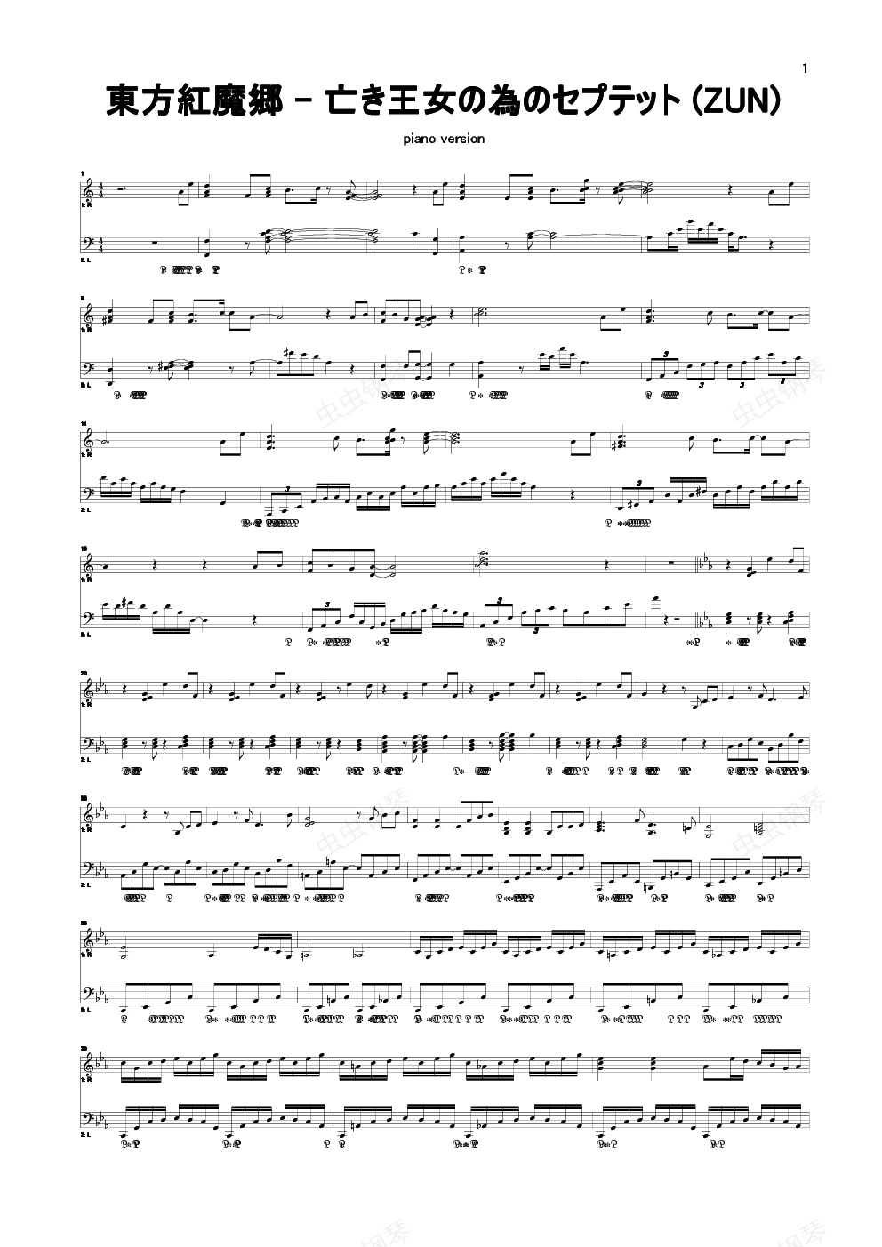 钢琴谱:【东方红魔乡】献给逝去公主的七重奏