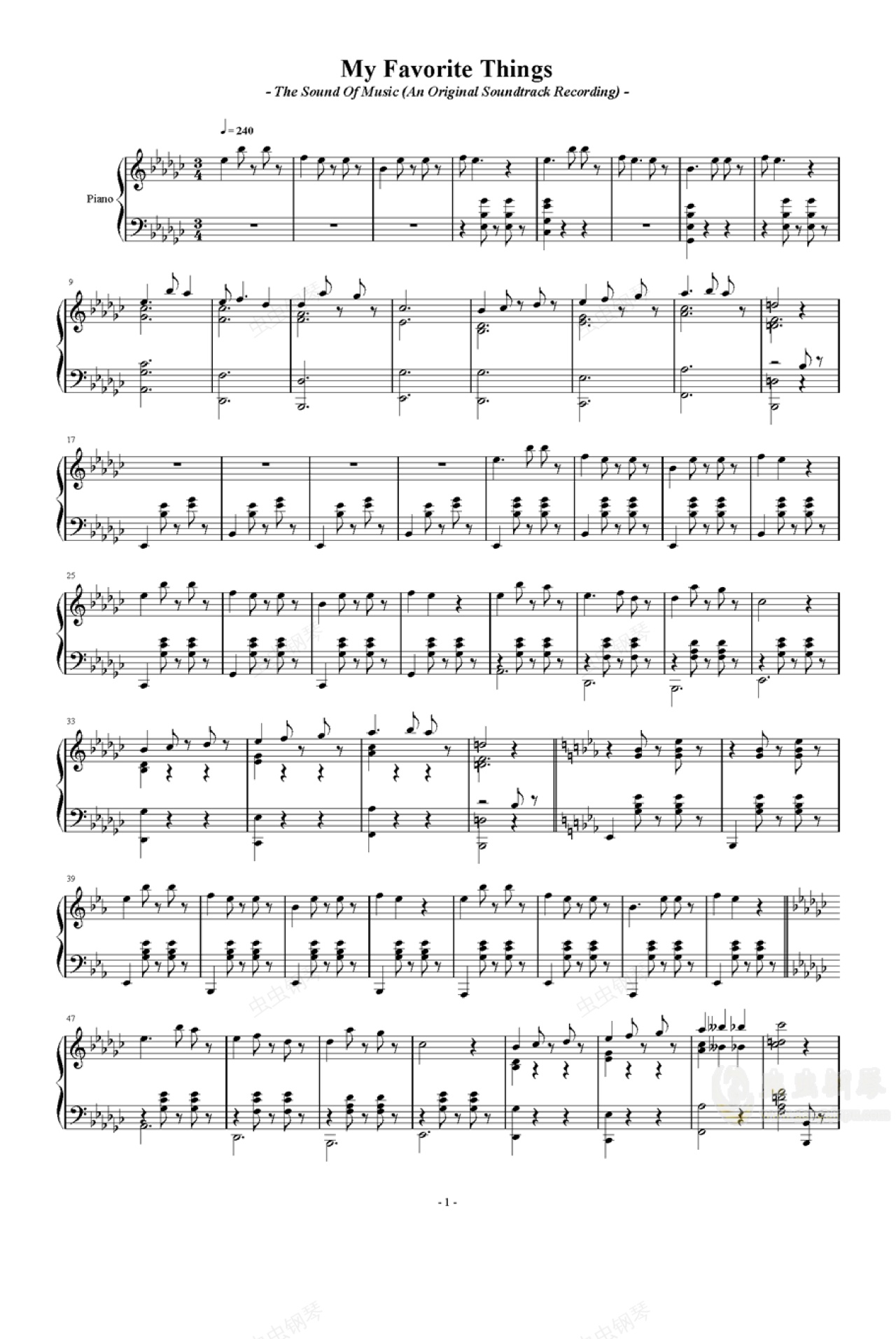 钢琴谱:【音乐之声】My Favorite Things