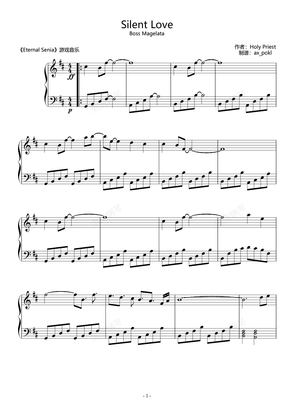 钢琴谱:Silent Love