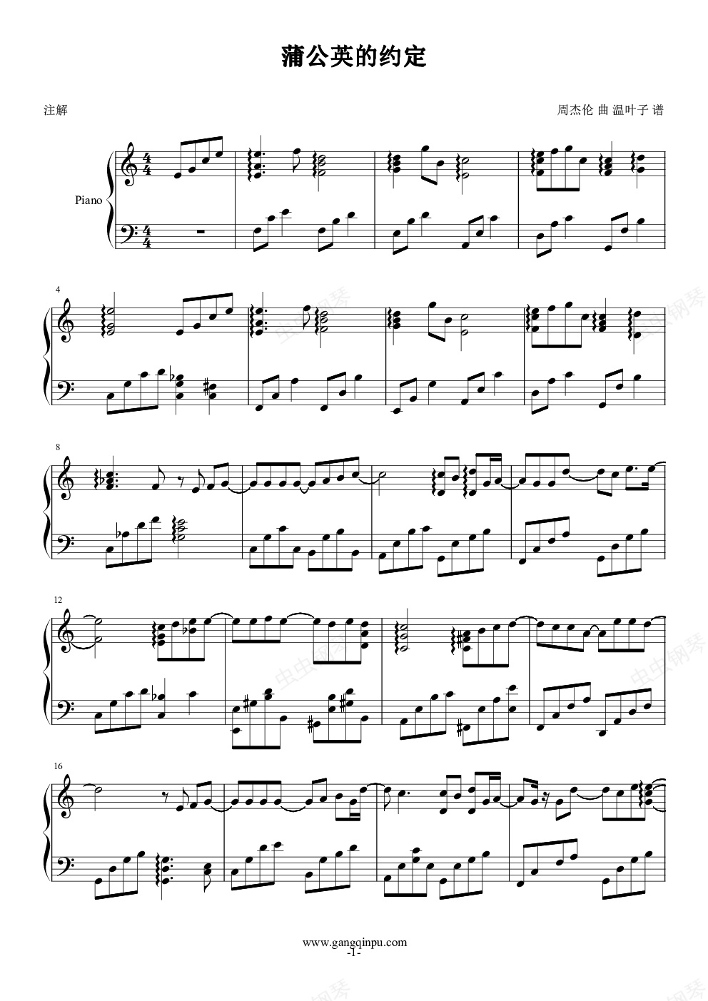 钢琴谱:蒲公英的约定(雪绒花)