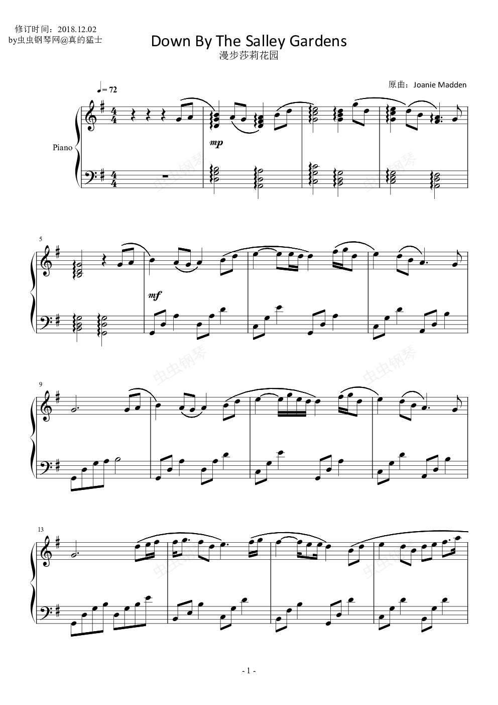 钢琴谱:Down By The Salley Gardens钢琴改编版