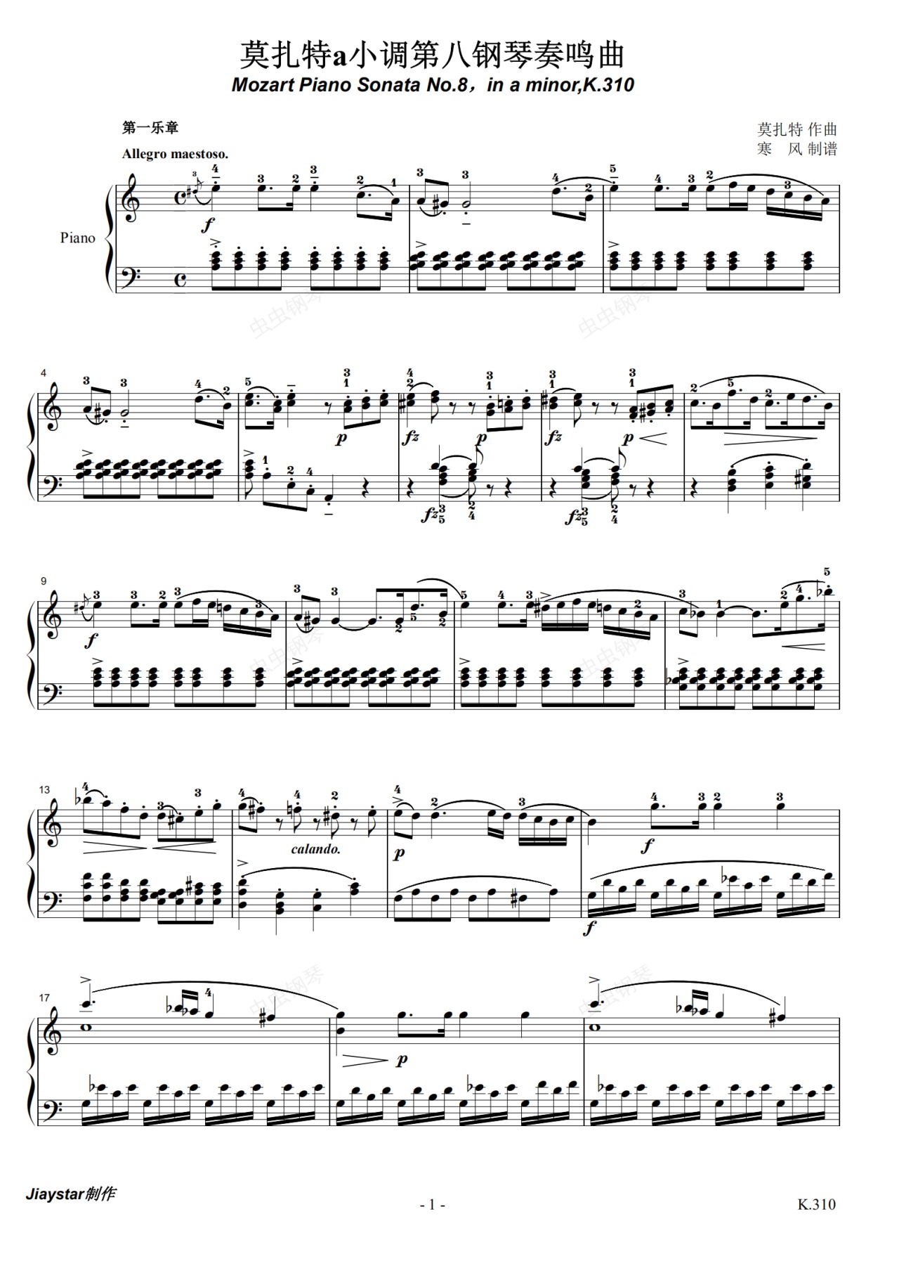 钢琴谱:莫扎特a小调第八钢琴奏鸣曲K310