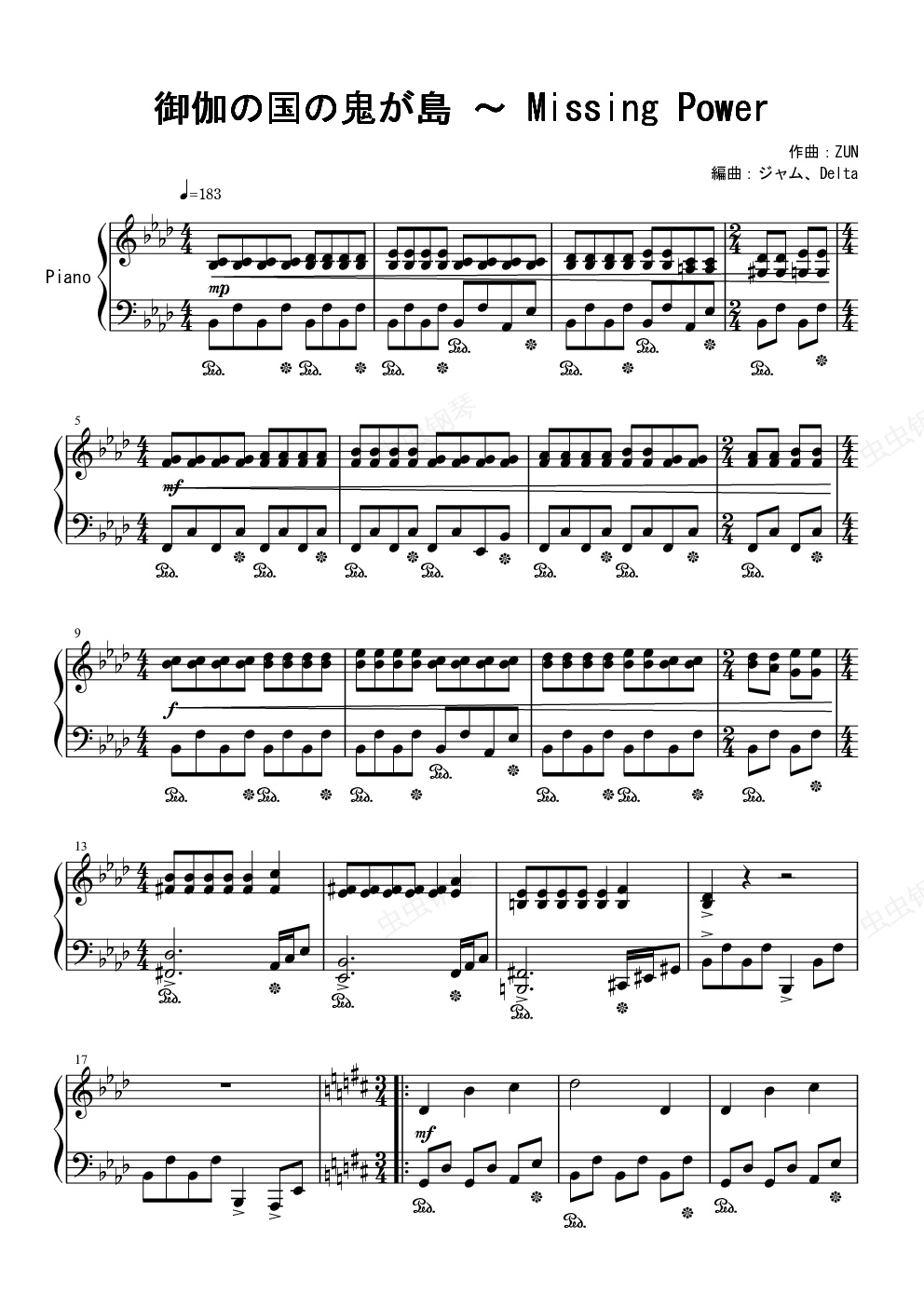钢琴谱:【东方萃梦想】御伽之国的鬼岛 ~ Missing Power