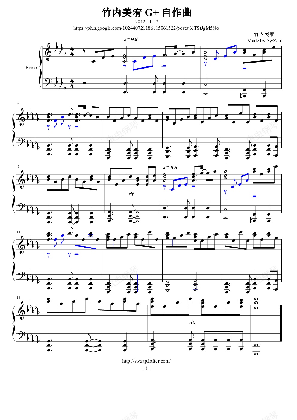 钢琴谱:【20121117】竹内美宥 G+ 自作钢琴曲