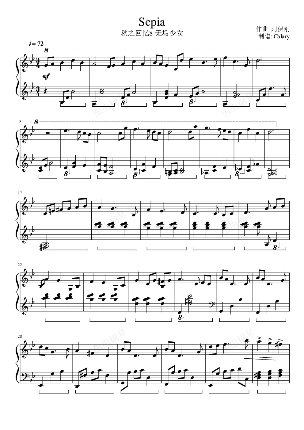 钢琴谱:秋之回忆8无垢少女-Sepia