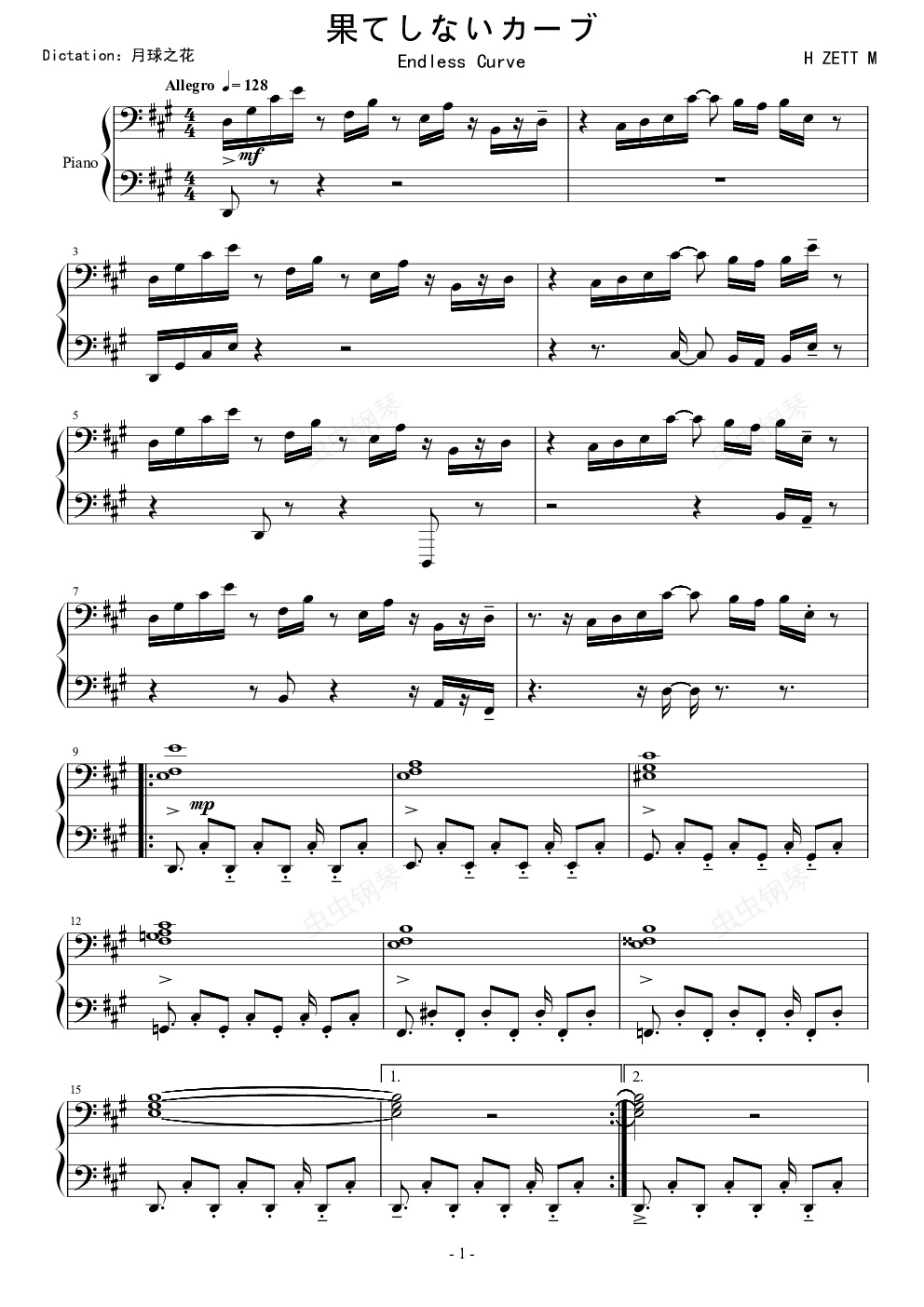 钢琴谱:【H ZETT M】果てしないカーブ Endless Curve