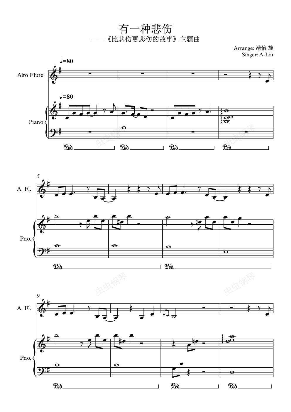 钢琴谱:有一种悲伤(伴奏版)