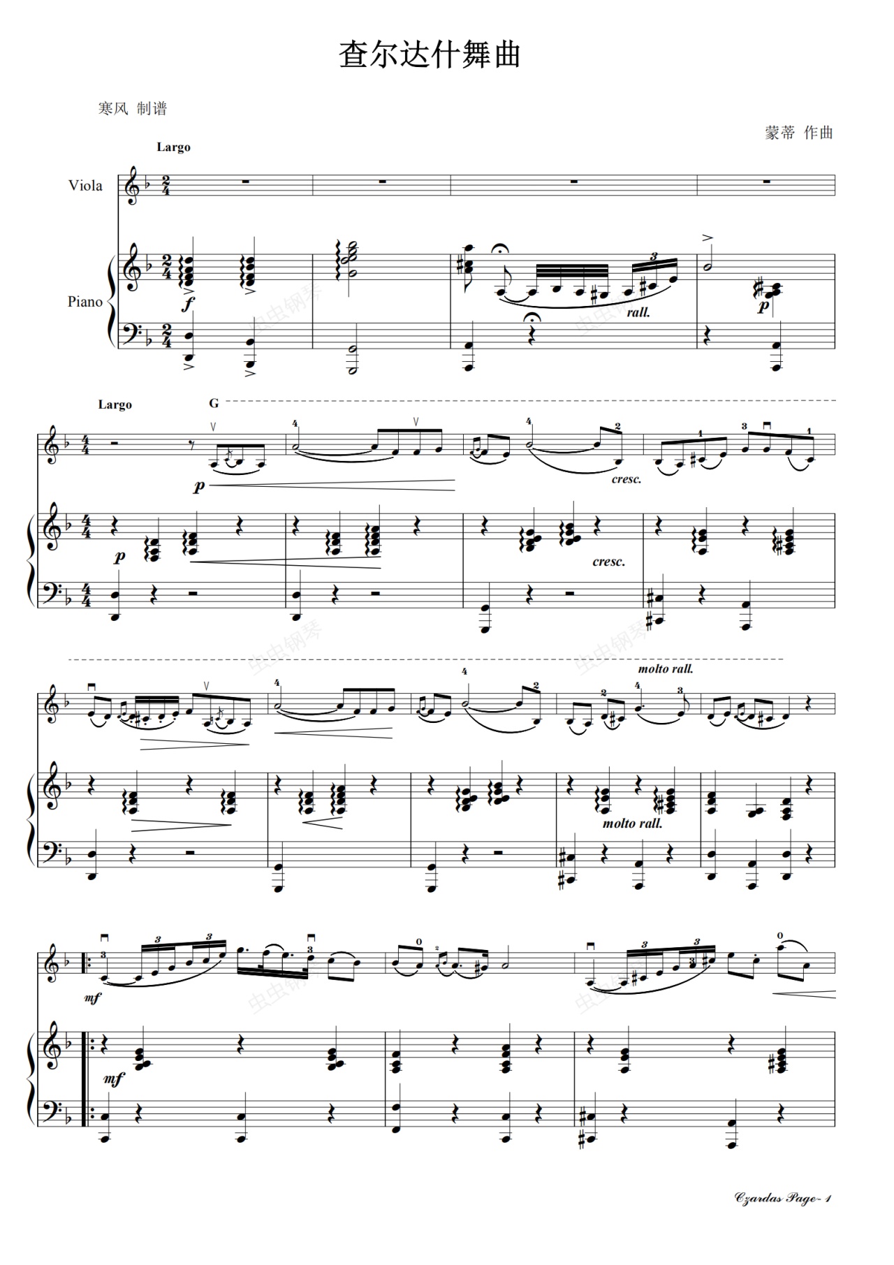 钢琴谱:查尔达什舞曲-钢琴+小提琴