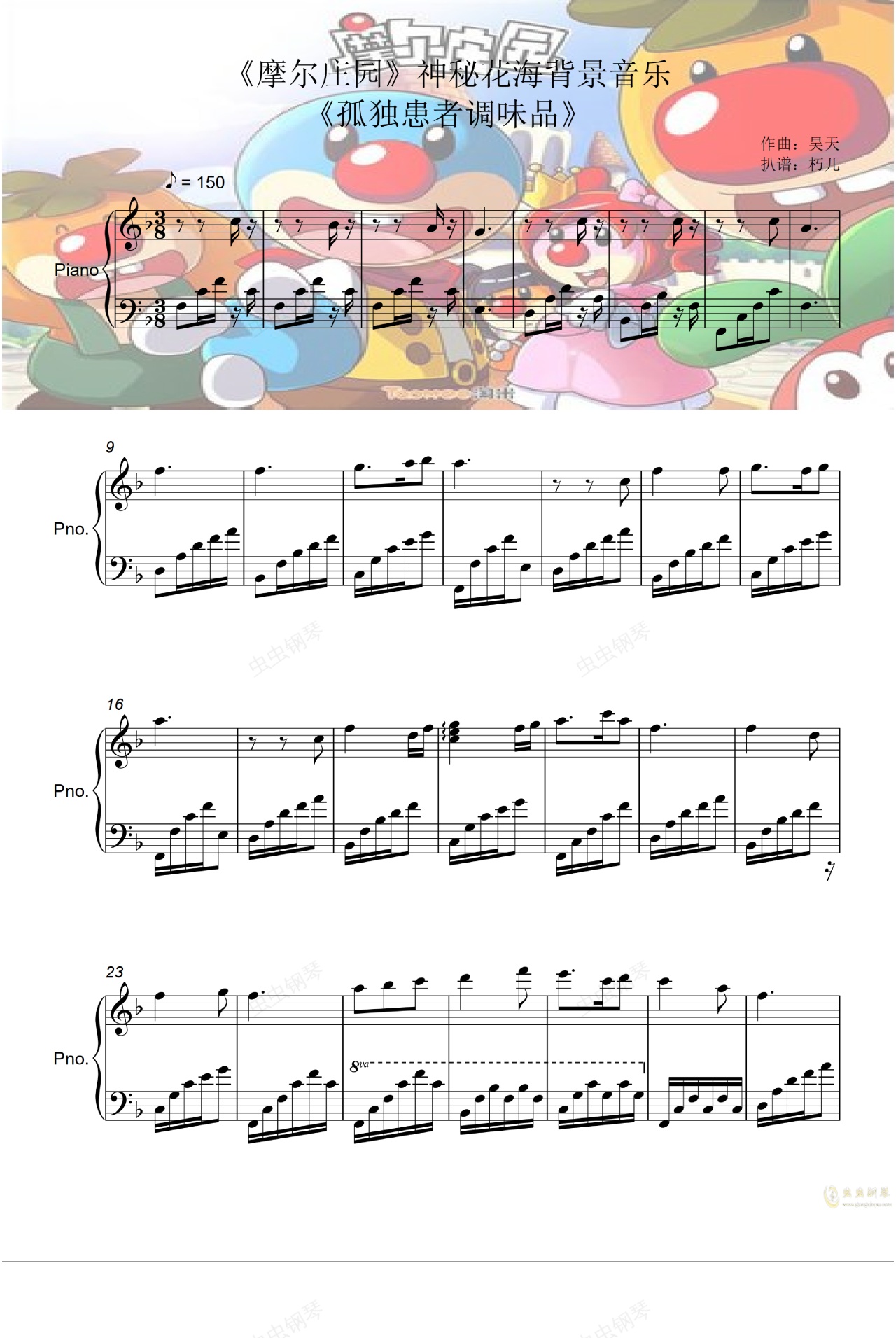钢琴谱:《摩尔庄园》神秘花海背景音乐《孤独患者调味品》